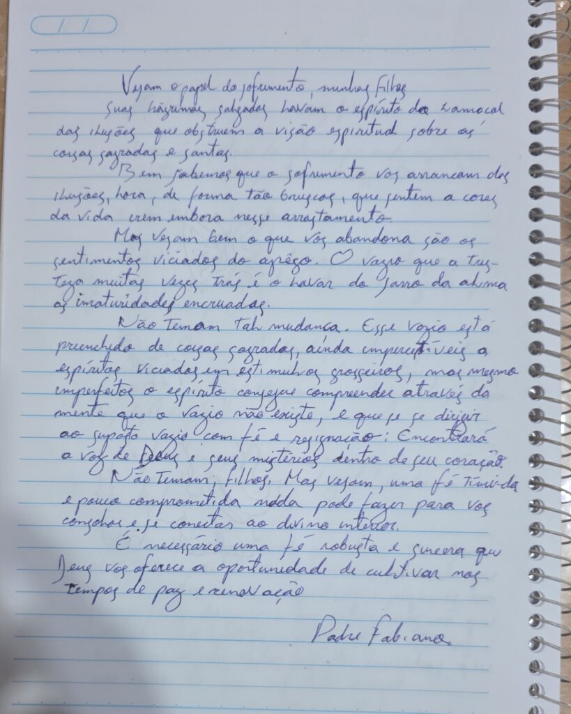 Segue abaixo a mensagem que recebemos por meio da Psicografia: