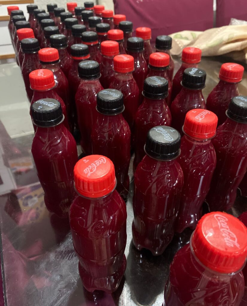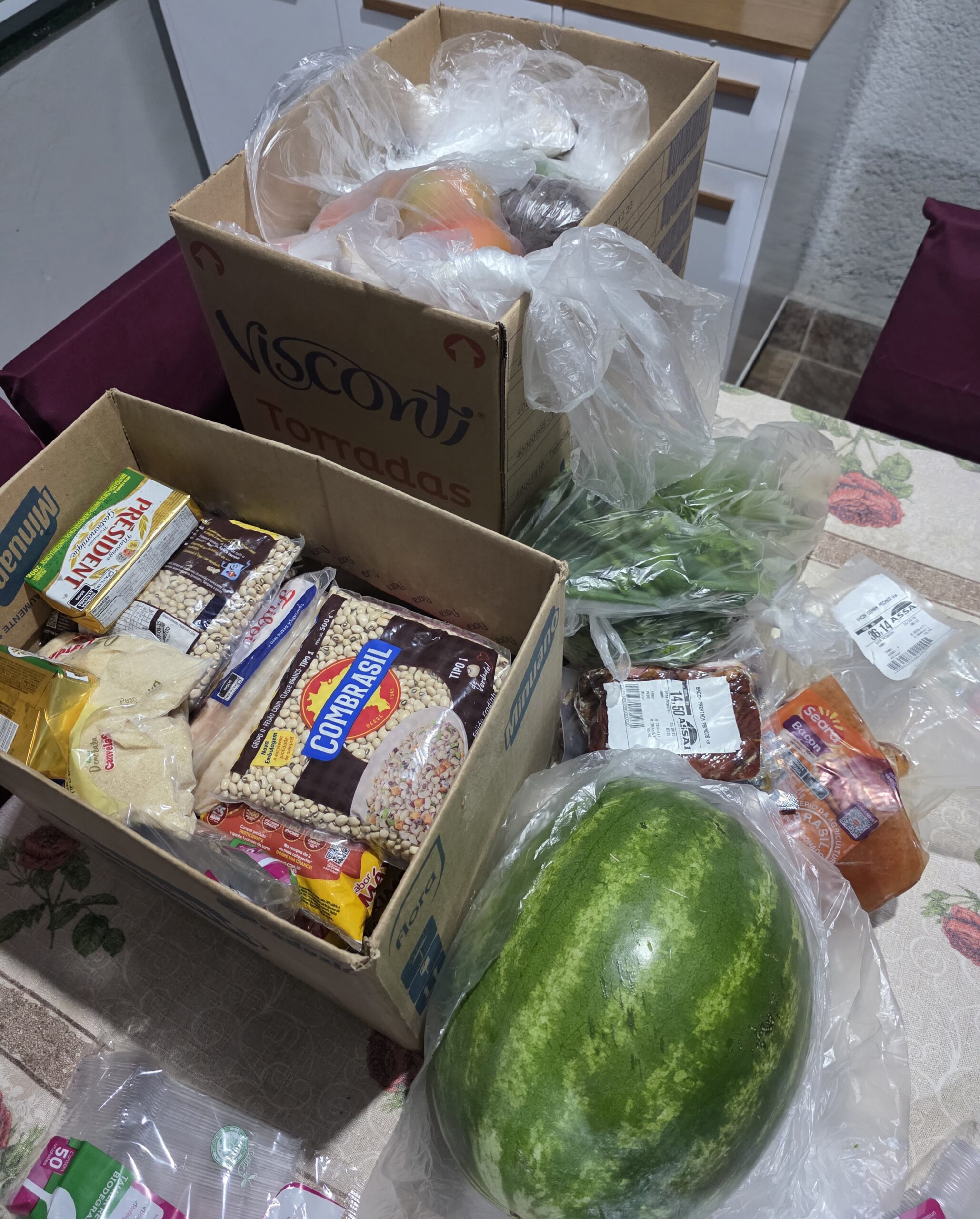 500g Bacon - Suco Vermelho:3 Garrafas de 1 litro se suco concentrado de goiaba6 beterrabas1 melancia1 gengibre1kg de Açúcar Demerara