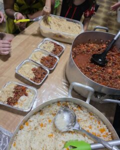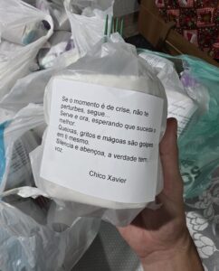 Oferecemos em média 60 refeições completas mais água, vitamina e sobremesa. Levamos também quites de higiene com escova de dentes, pasta de dentes, sabonetes, absorventes, papel higiênico. Fazemos orações, oferecemos acolhimento fraternal, medicações, roupas, mantas e etc.
